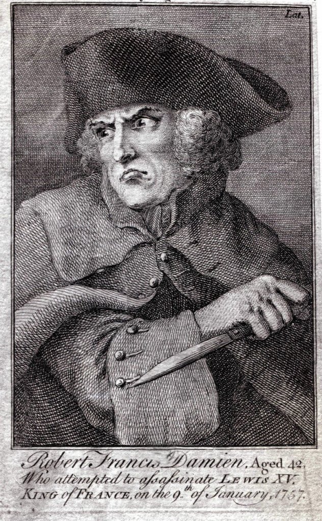 Luis XV recibió una puñalada por el costado derecho del tórax. Robert-François Damiens, quien había servido como militar y anteriormente había sido expulsado del colegio de Jesuitas por su “mala conducta” fue quien cometió el agravio. Además de la navaja, en sus bolsillos portaba unas pequeñas tijeras, un libro religioso y un total de 35 luises de oro; generó la sospecha de regicidio concebido por un grupo de poder en donde Robert -se sospecha- sería el brazo ejecutor[1]. La condena para Damiens fue el parricidio, sentencia establecida porque el rey era visto como un “padre”, esta pena se castiga con desmembramiento. A pesar que en los múltiples interrogatorios comentaba el “no querer matar al rey” y que, de haberlo hecho, habría usado la otra navaja que portaba. Lo único que demandaba, era su escucha.